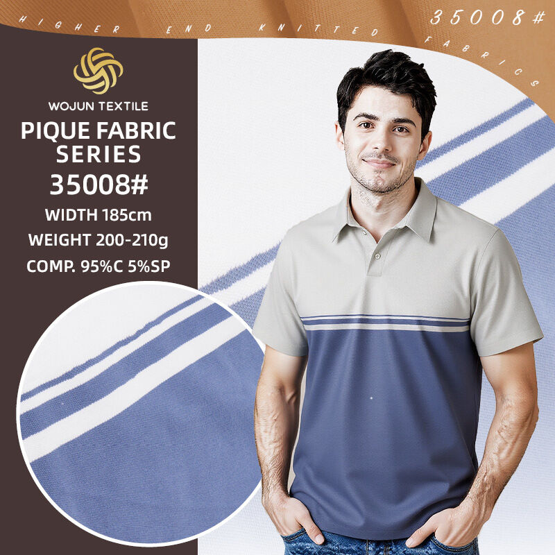 Striped Cotton Pique Stof: 210gm Stretch Textuur voor Premium T-shirts